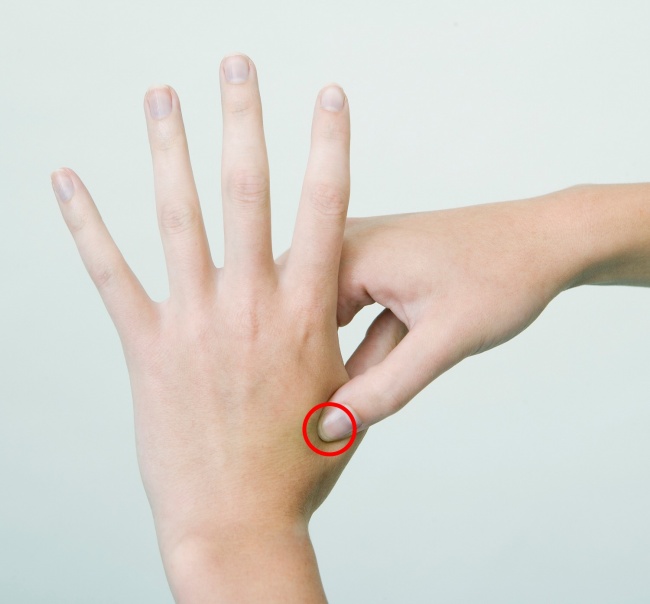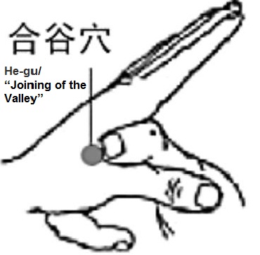 Li4 “joining valley”(Chinese name: He-gu) is located at the middle junction of your index finger and thumb. This point is good for the immune system and for health in general. Located on the yang ming Large Intestine channel, it is used as a key point circulate blood and vital energy and one of the most commonly used points in acupuncture.